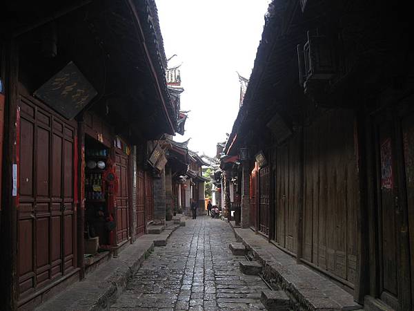 大研古城是個傭懶的小城,即使已經快十點了,巷弄間仍只有三兩老人在散步,沿街的店鋪也幾乎大門深鎖