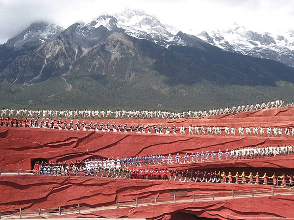雪山腳下還有一個著名的民俗表演,就是由張藝謀導演的印象麗江,表演內容訴說著麗江幾個少數民族融合的故事,浩壯、感人,十有八九看過表演的女生,可是會因此而落淚呢,呵呵