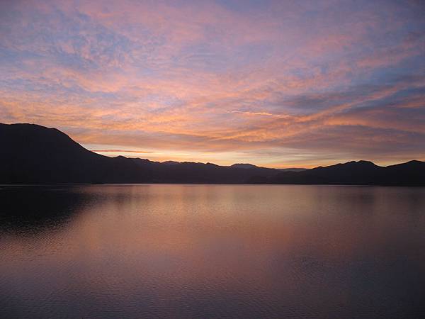 雖然颱風吹不到雲南來,但湖上卻有著像是颱風來臨前,才會出現的火燒雲,而且還是在快要日出前看到的,這並非是黃昏時拍的相片哦