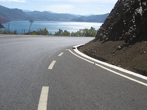 公路旁就是藍色瀘沽湖,許多地方並沒有護欄,所以要減速慢行,才不容易發生危險,而且有時車多還可能因為閃避不及而發生意外呢