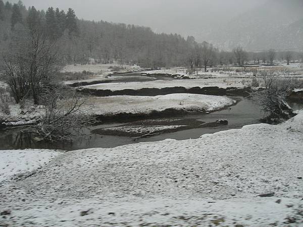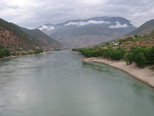 前往虎跳峽的的路上,可以看見左側的有條水量不算多的河流(旱季時),這其實就是長江的上游哦,想要徒步涉水穿越長江,在這裡是唯一的機會喲,呵呵,但還是別了,免得卡在沙丘汙泥上動彈不得,那可就哭笑不得了,呵呵